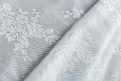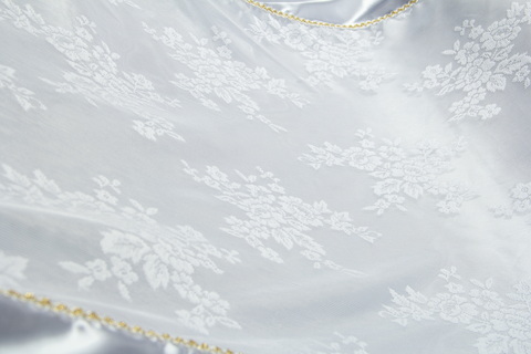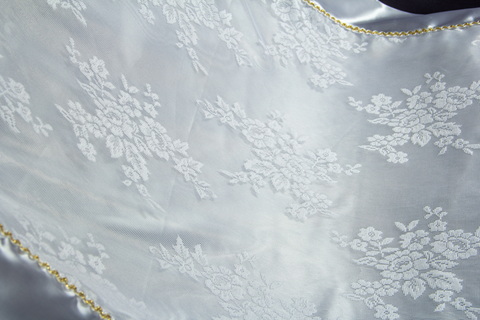 Ткани: атлас, тюлевое полотно с цветочным рисунком, атласный волан, тесьма.